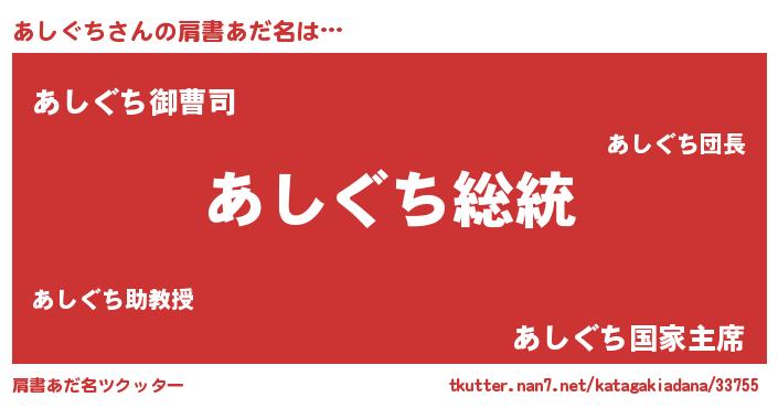 | ヒーロー風カッコイイあだ名 | 『超時空戦士アシグチ』『幻影騎士アシ』 |