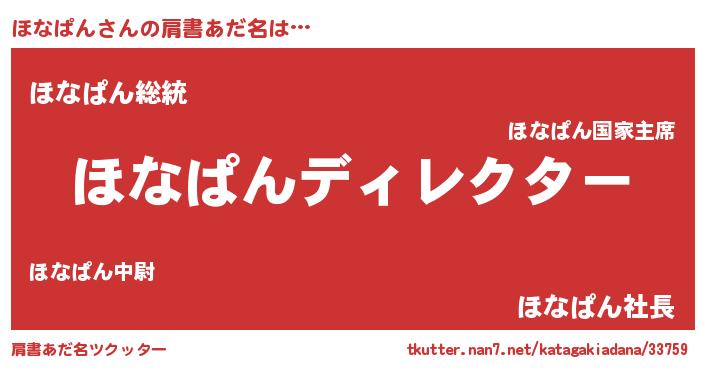 | 男性向けラノベタイトル風あだ名 | 『はたらくほなぱんさま!』 |