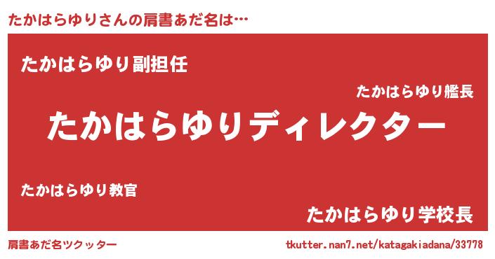 | 男性向けラノベタイトル風あだ名 | 『たかはらゆりに滅ぼされるだけの簡単なお仕事です』 |
