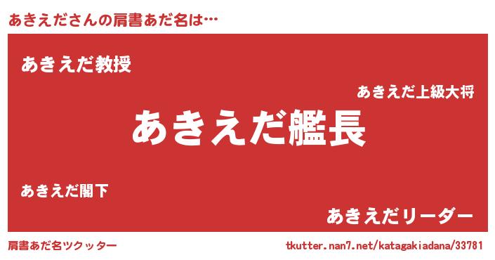 | ピコ太郎風あだ名 | 『アア太郎』『アキ次郎』『アコ十郎』 |