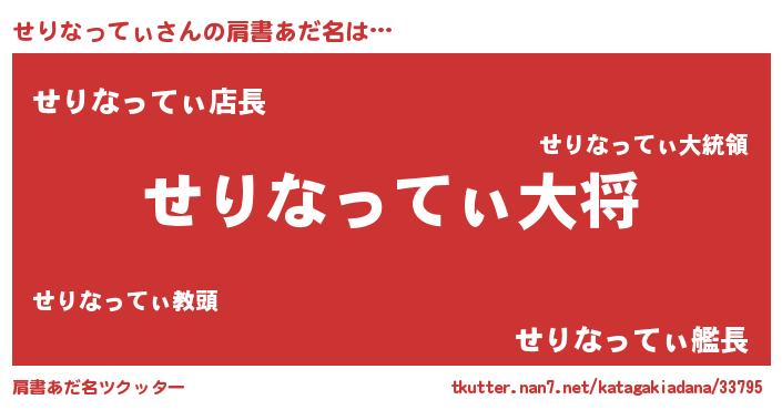 | 男性向けラノベタイトル風あだ名 | 『転生したらせりなってぃだった件』 |