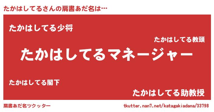 | ヘコむあだ名 | 『たかはしてる(小並感)』『たかもー』 |