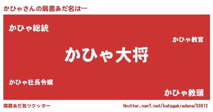 | 男性向けラノベタイトル風あだ名 | 『カヒャスレイヤー』『魔弾の王とかひゃ』 |