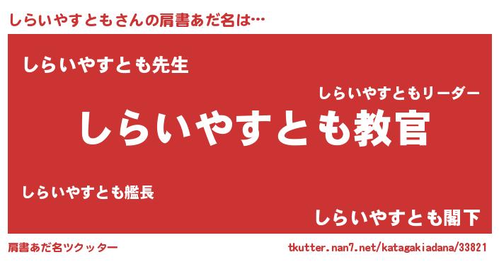 | 意味不明あだ名 | 『住所不定無職しらいやすとも(5歳)』 |