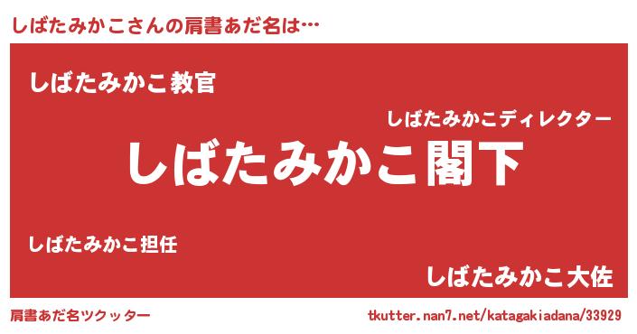 | 男性向けラノベタイトル風あだ名 | 『Re:しばたみかこから始める異世界生活』 |