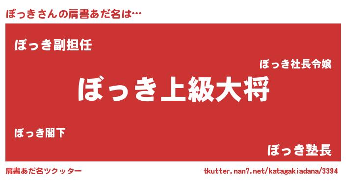 | ヘコむあだ名 | 『ぼっき(遠い目)』『ぼっっちょ』 |