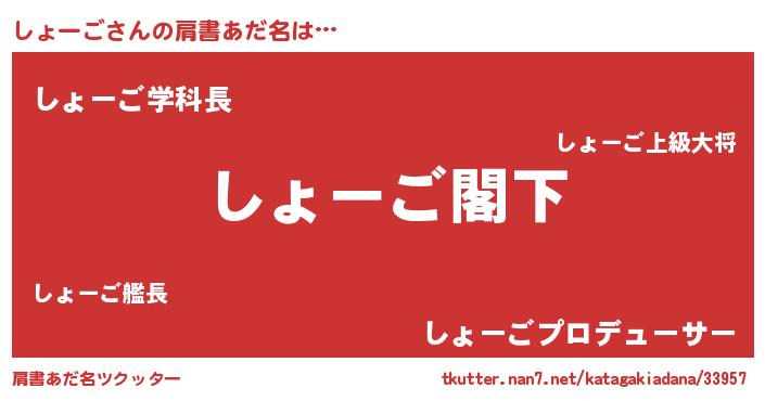 | 男性向けラノベタイトル風あだ名 | 『Re:しょーごから始める異世界生活』 |