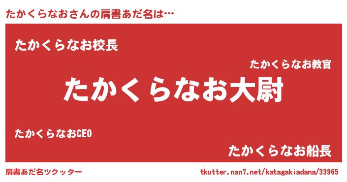 | 男性向けラノベタイトル風あだ名 | 『転生したらたかくらなおだった件』 |