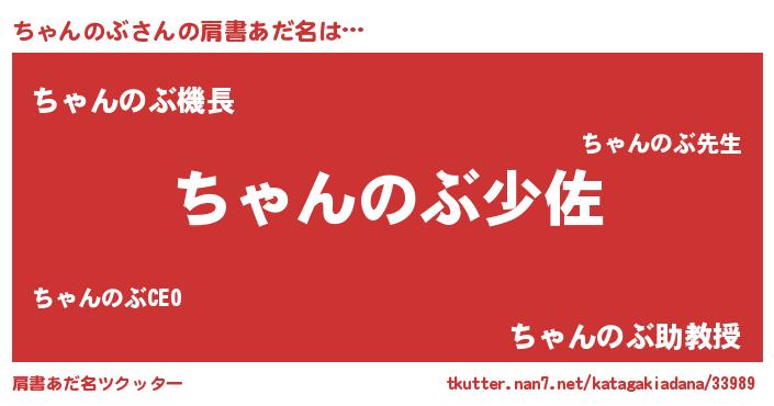| 男性向けラノベタイトル風あだ名 | 『転生したらちゃんのぶだった件』 |