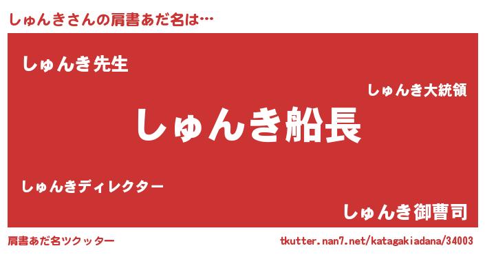 | ヘコむあだ名 | 『しゅんき(笑)』『しゅにー』『豆乳』 |