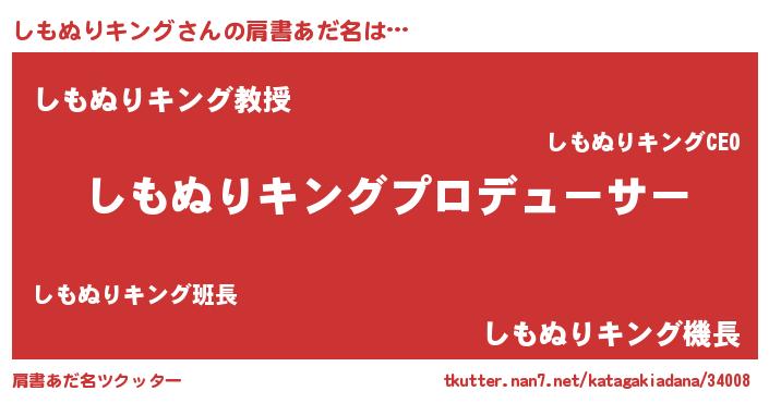 | 男性向けラノベタイトル風あだ名 | 『しもぬりキングに滅ぼされるだけの簡単なお仕事です』 |