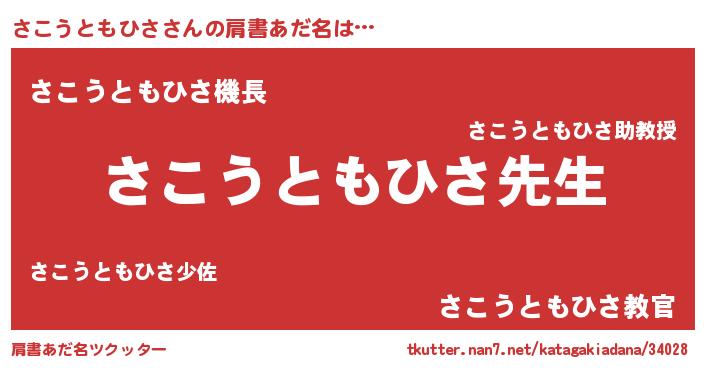 | ヘコむあだ名 | 『さこうともひさ(小並感)』『さこっふぃ~』 |