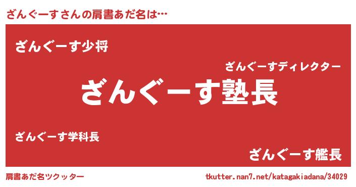 | 男性向けラノベタイトル風あだ名 | 『ざんぐーすの嫁は女の子じゃないと思った?』 |