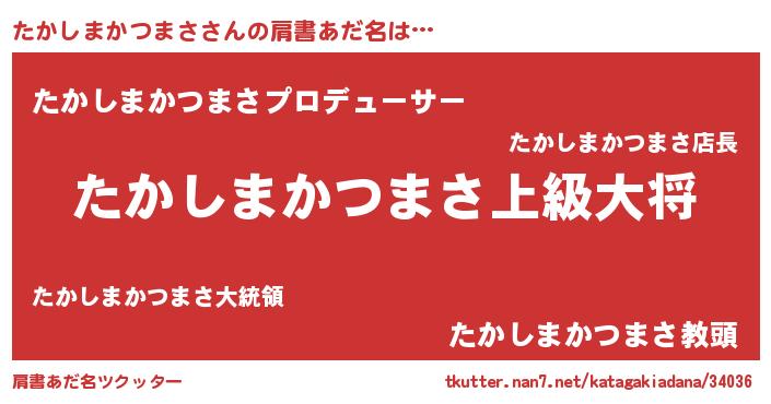 | 男性向けラノベタイトル風あだ名 | 『タカシマカツマサスレイヤー』 |
