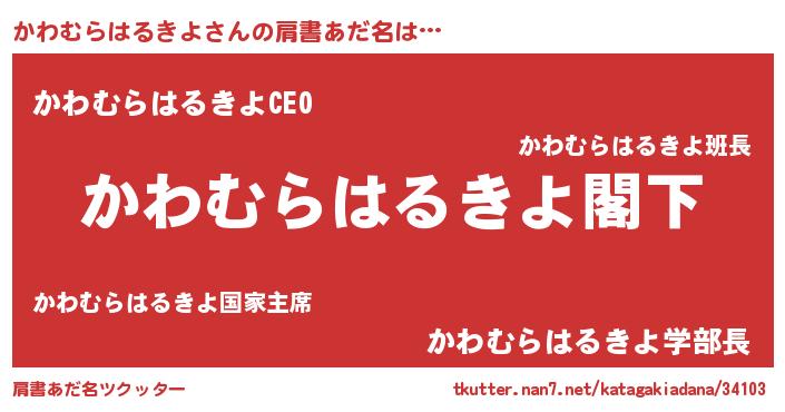 | 意味不明あだ名 | 『自称かわむらはるきよ』 |