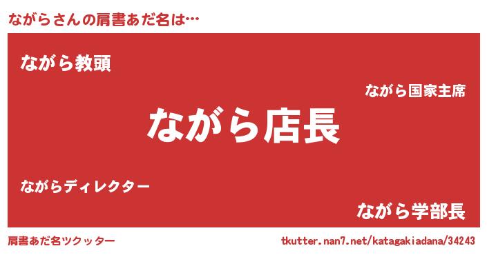 | 欧米人風あだ名 | 『マイケルながら』『ダルビッシュながら』 |