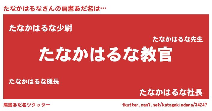 | ヒーロー風カッコイイあだ名 | 『仮面タナダー』『スーパータナカハルナ』 |