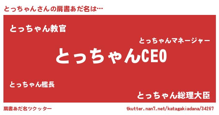 | 男性向けラノベタイトル風あだ名 | 『とっちゃんの憂鬱』『緋弾のトッチャン』 |