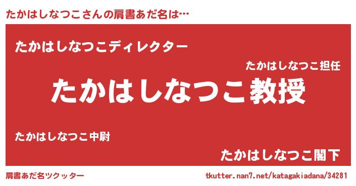 | ヘコむあだ名 | 『たかはしなつこ(小並感)』『たかにゅー』 |