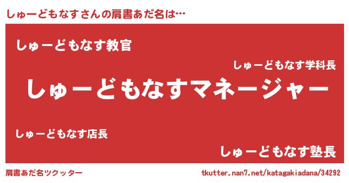 | 男性向けラノベタイトル風あだ名 | 『しゅーどもなすに滅ぼされるだけの簡単なお仕事です』 |