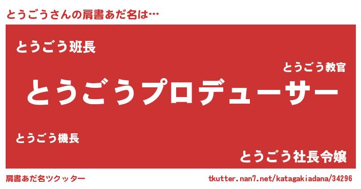 | 意味不明あだ名 | 『とにかく怪しいとうごう』 |