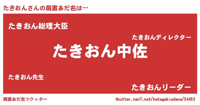 | 男性向けラノベタイトル風あだ名 | 『たきおん~年齢イコール彼女いない歴の魔法使い~』 |