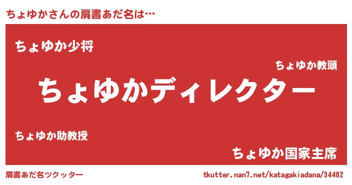 | 男性向けラノベタイトル風あだ名 | 『ちょゆかに滅ぼされるだけの簡単なお仕事です』 |