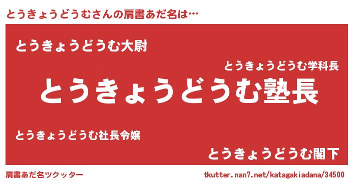 | ポケモン風あだ名 | 『ヒトウキョウドウム』『トウキング』 |