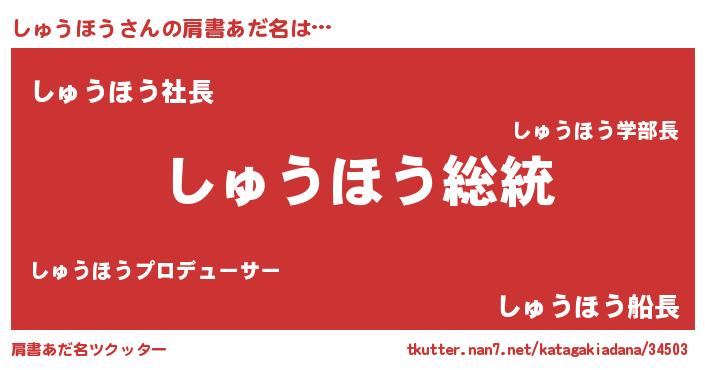 | ヒーロー風カッコイイあだ名 | 『最強戦士シュウホウ』『黄金騎士シュ』 |