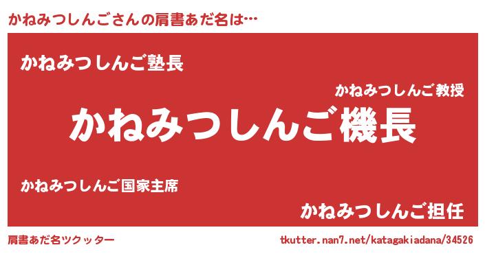 | 意味不明あだ名 | 『とにかく怪しいかねみつしんご』 |