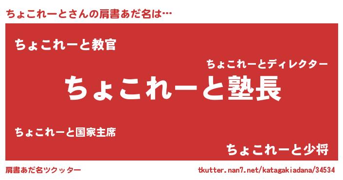 | 意味不明あだ名 | 『とにかく怪しいちょこれーと』 |