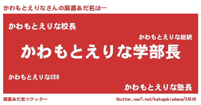| 男性向けラノベタイトル風あだ名 | 『ノーゲーム・ノーカワモトエリナ』 |