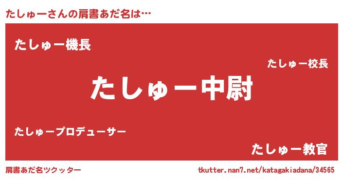 | ヘコむあだ名 | 『たしゅー(笑)』『酢こんぶ』 |