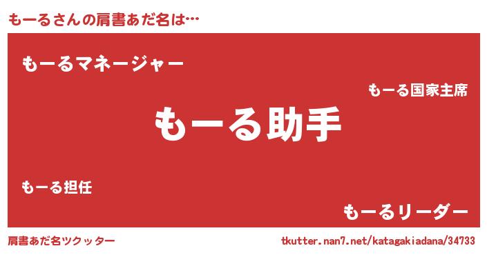 | 女子向けラノベタイトル風あだ名 | 『もーる恋絵巻』『横柄もーると宰相陛下』 |