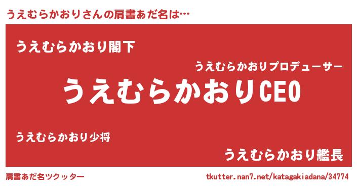 | 女子向けラノベタイトル風あだ名 | 『誰かこのうえむらかおりを説明してください! ~契約から始まるウェディング~』 |