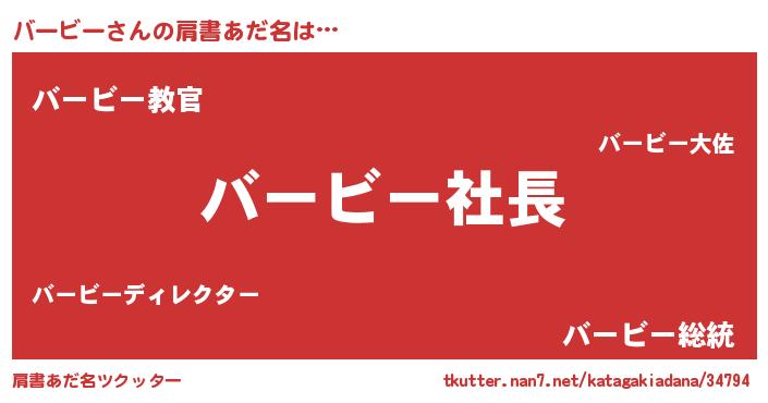 | 女子向けラノベタイトル風あだ名 | 『バービー姫と円卓の騎士』 |