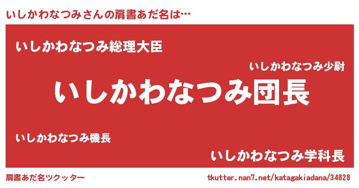 | 男性向けラノベタイトル風あだ名 | 『いしかわなつみの嫁は女の子じゃないと思った?』 |