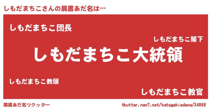 | ポケモン風あだ名 | 『シモダダネ』『ヒシモダマチコ』 |