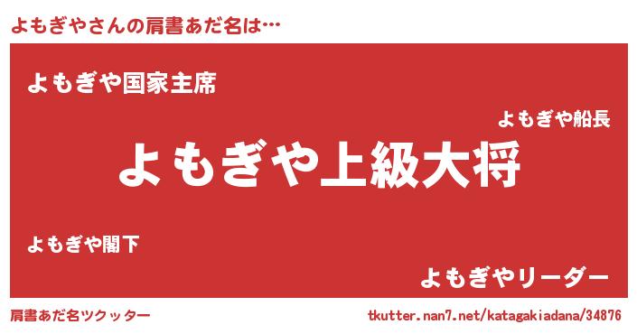 | 男性向けラノベタイトル風あだ名 | 『よもぎや~年齢イコール彼女いない歴の魔法使い~』 |