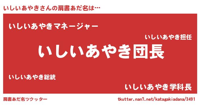 | 胡散臭い通販商品みたいなあだ名 | 『信頼と実績のサプリメント…その名も「いしいあやき」』 |