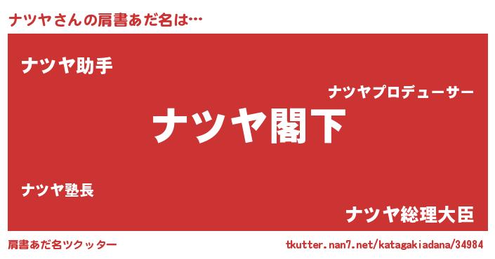 | 女子向けラノベタイトル風あだ名 | 『闇のナツヤ』『ナツヤ夫妻のなれそめ』 |