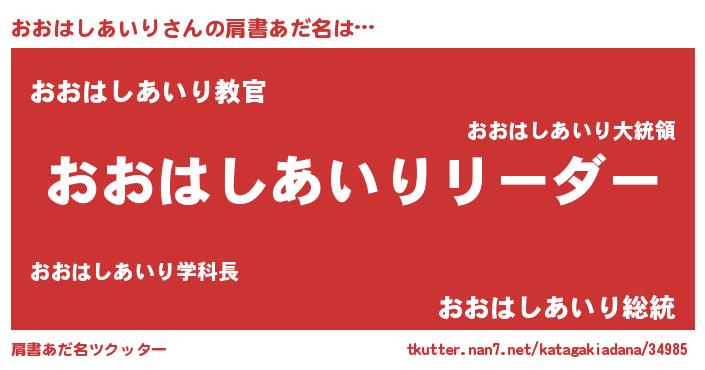 | 意味不明あだ名 | 『とにかく怪しいおおはしあいり』 |
