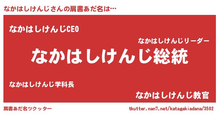 | 恥ずかしいあだ名 | 『ナカハシケンジデラックス』『なかちん』 |