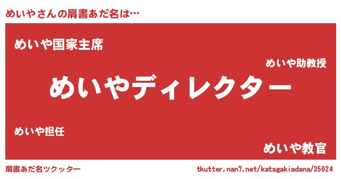 | 男性向けラノベタイトル風あだ名 | 『めいやに滅ぼされるだけの簡単なお仕事です』 |