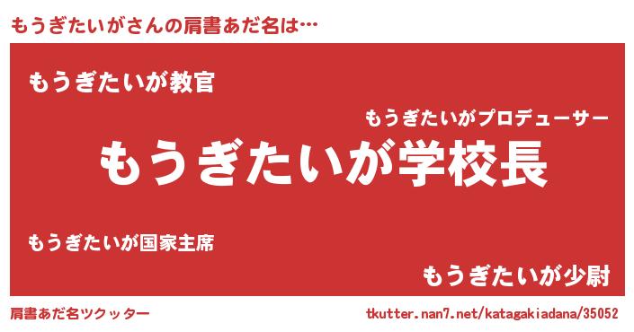 | 男性向けラノベタイトル風あだ名 | 『ノーゲーム・ノーモウギタイガ』 |