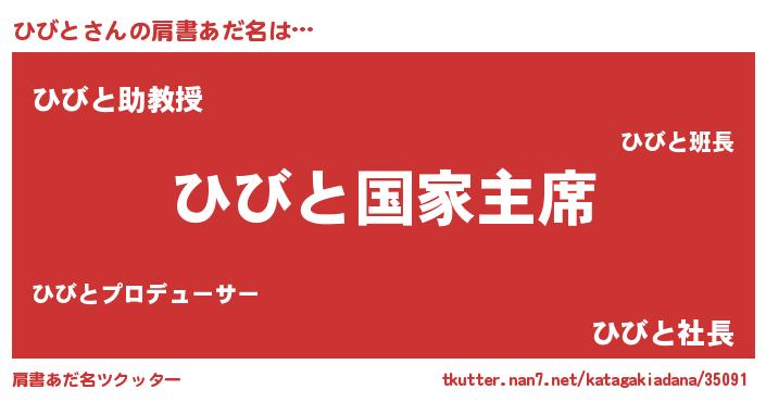 | ポケモン風あだ名 | 『ヒビトダネ』『ヒックウザ』 |