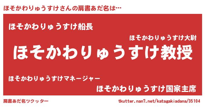 | 男性向けラノベタイトル風あだ名 | 『ノーゲーム・ノーホソカワリュウスケ』 |