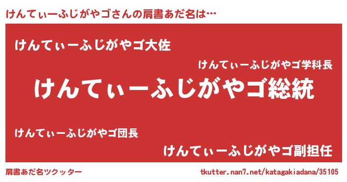 | 意味不明あだ名 | 『自称けんてぃーふじがやゴ』 |