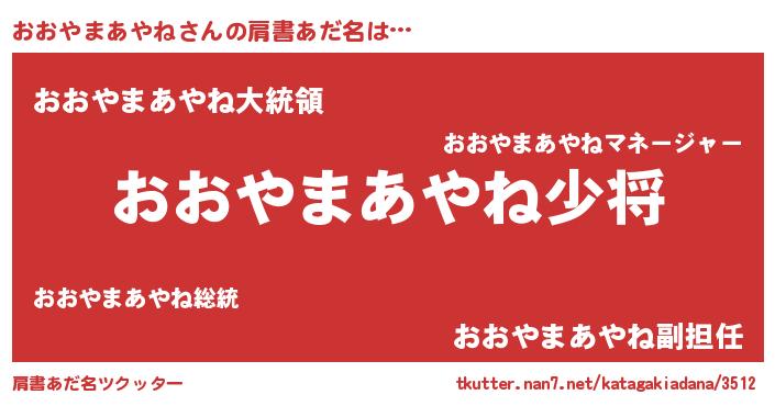 | 男性向けラノベタイトル風あだ名 | 『転生したらおおやまあやねだった件』 |
