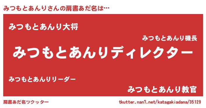 | 男性向けラノベタイトル風あだ名 | 『みつもとあんりに滅ぼされるだけの簡単なお仕事です』 |